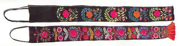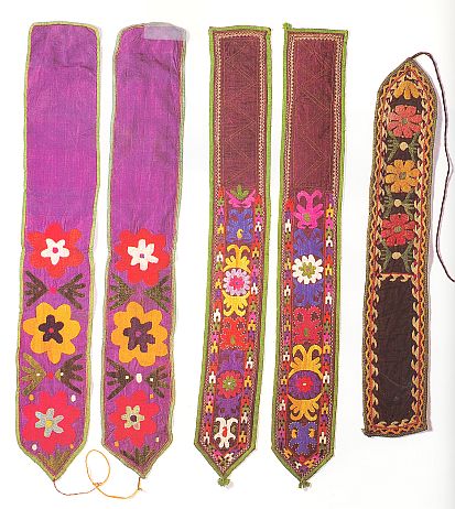 The palette of embroidered piece is distinctive and it is clear that if one collects such things, one dare not be entirely allergic to synthetic dyes. Whatever those in this piece may be, I still find them attractive. The two pieces in the image below are plait covers, Kabul, 1930. |