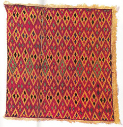 Published by Ferorzesons (Pvt.) LTD., Lahore- Rawalpindi-Karachi in 1993, (ISBN 969 0 10143 9). The quality of the colour photos is exceptionally good, but you will have a basis for forming your own opinion below. The format of each piece is given, it is attributed by ethnic group and geography and an estimate of its age is provided. |