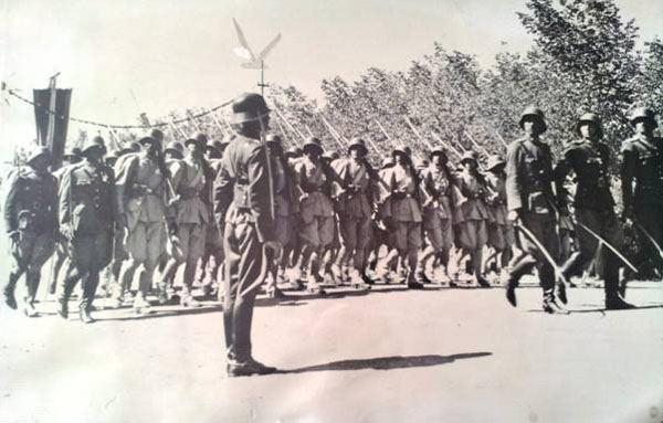 2/10/43 Afghanistan independence day Afghan troops march past Zahir Shah below: